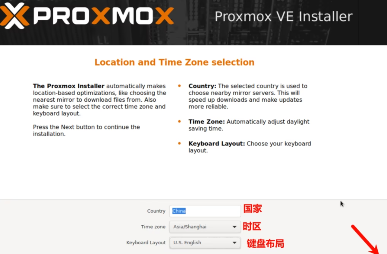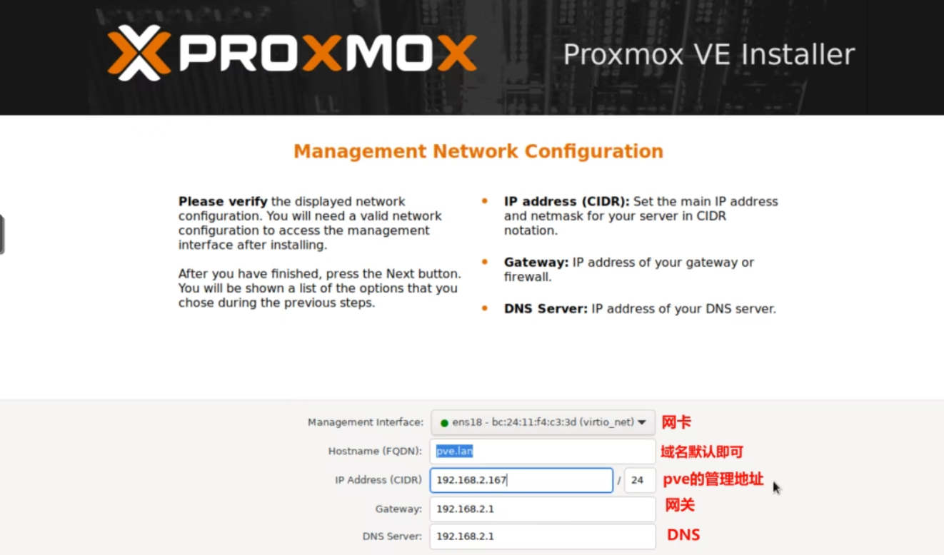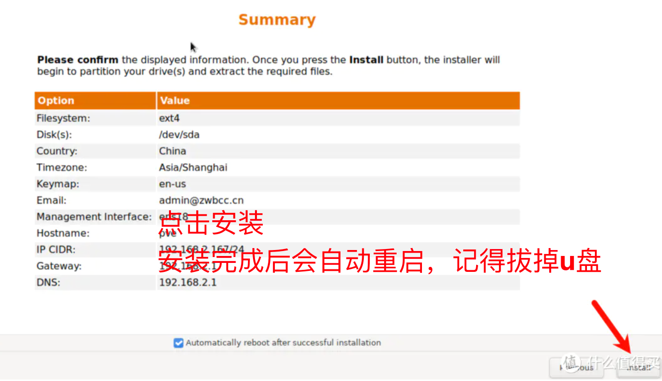 将系统镜像写入引导 u 盘,进入安装向导,最值得注意的是地区和 IP、网口,如下图