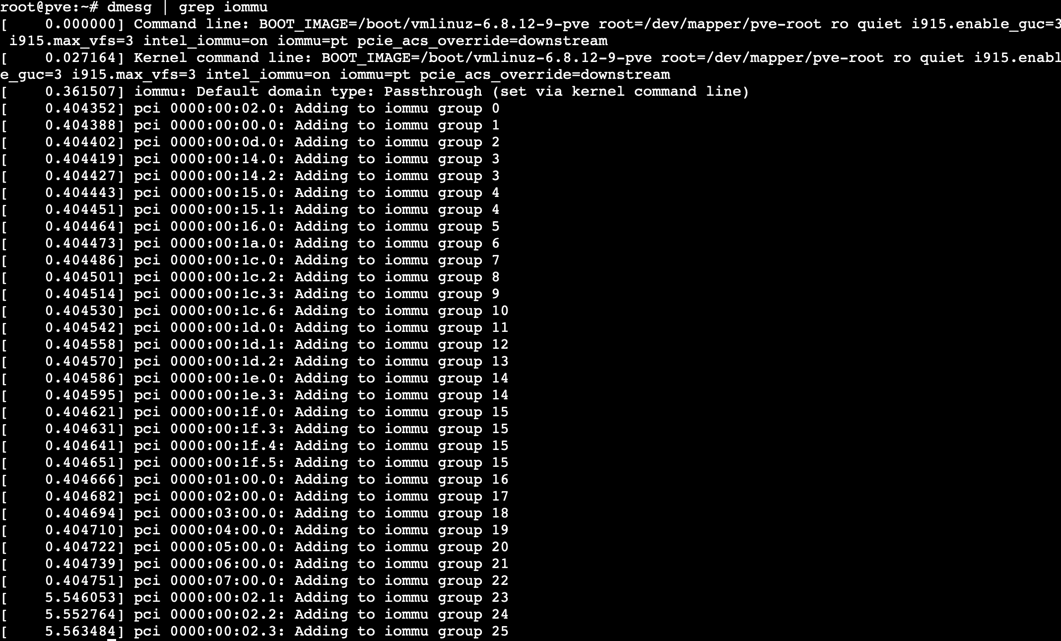reboot重启在PVE的Shell中输入以下命令查看SR-IOV核显直通是否成功